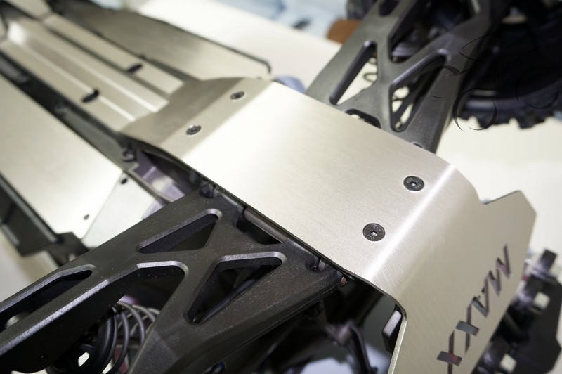 The X-MAXX chassis armor is divided into two front and rear guard plates and three middle guard plates. The product adopts imported stainless steel 2.5mm laser cutting, and the German folding machine is pressed. The impact force received in the middle position is not too big. The use of stealing light design greatly reduces the weight of the car. Made. Laser logo lettering on both sides, laser MAXX LOGO cutting on the head, greatly increased the aesthetics and increased the solidity of the original car, due to the thickening of the shield, the original screws need to be lengthened.